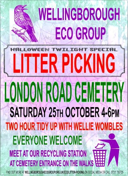To help us and keep us safe at this and future litter picks, Wellingborough Eco Group have purchased some litter pickers, hi-vis vests and safety equipment including road signs, so everything is provided but please bring your own gloves and do dress up if you can. Join in, bring your friends and family, ALL WELCOME!