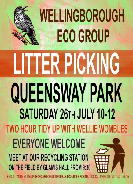 This Month’s Two Hour Tidy Up takes place on Saturday 26th July in Queensway Park. We will be setting up our Recycling Station from 9:30 in the field behind Glamis Hall and ECO HUB, for litter picking between 10 and 12. We will be litter picking the whole park, and the nearby streets.