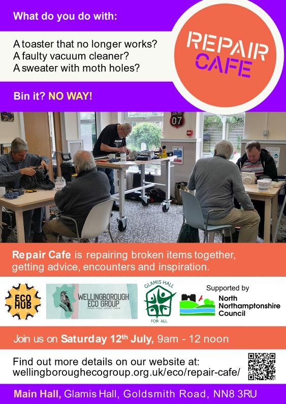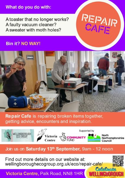 Find out more at: https://wellingboroughecogroup.org.uk/eco/repair-cafe